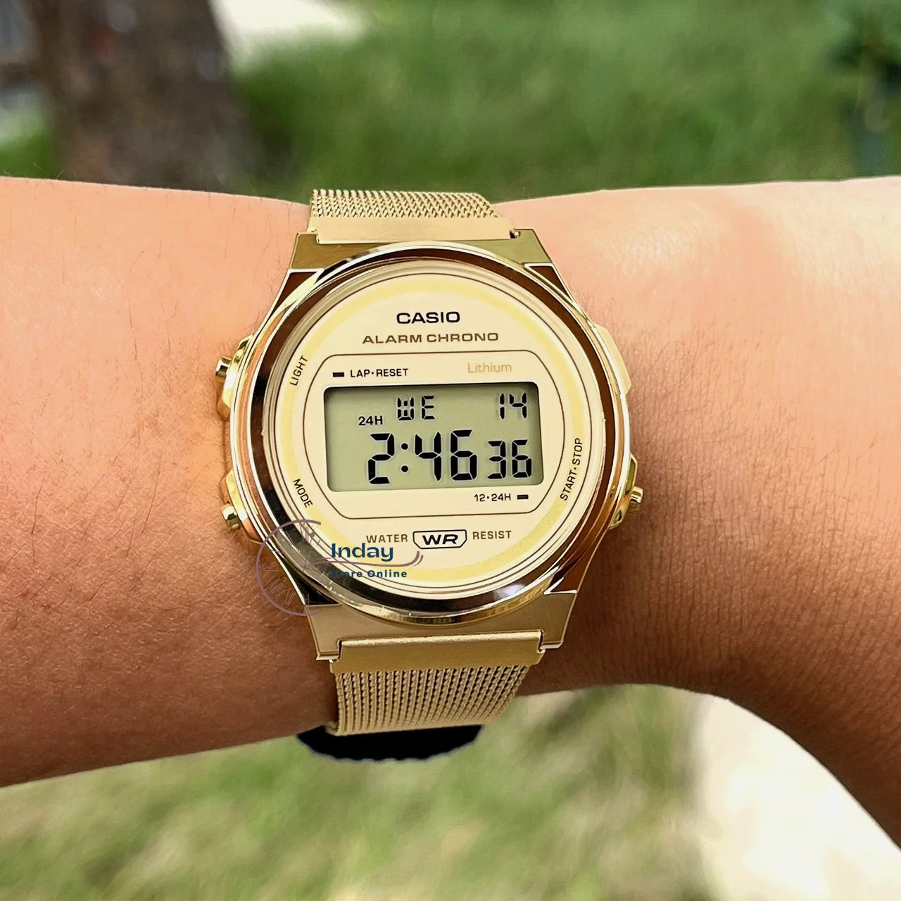 CASIO A171WEMG-9A – Classic digital watch with a sleek gold-tone finish, durable stainless steel strap, and essential features including stopwatch, alarm, and water resistance. Perfect for everyday style with a vintage touch.