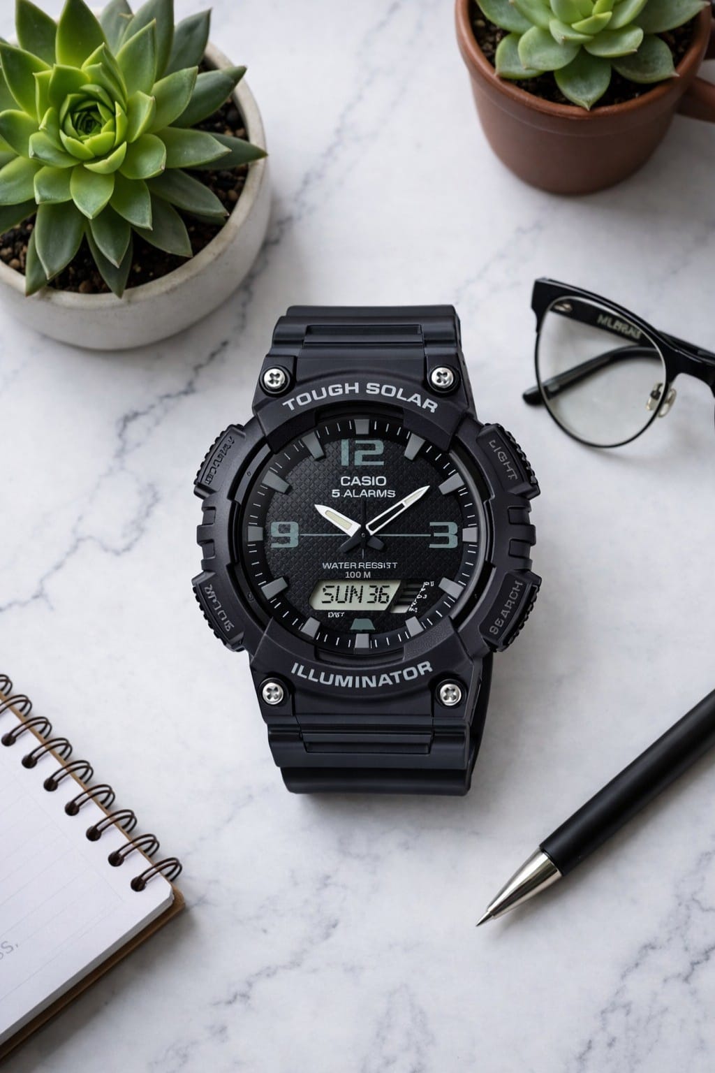 With 100-meter water resistance, LED illumination, and a rugged design, this watch is perfect for sports, travel, and daily wear.