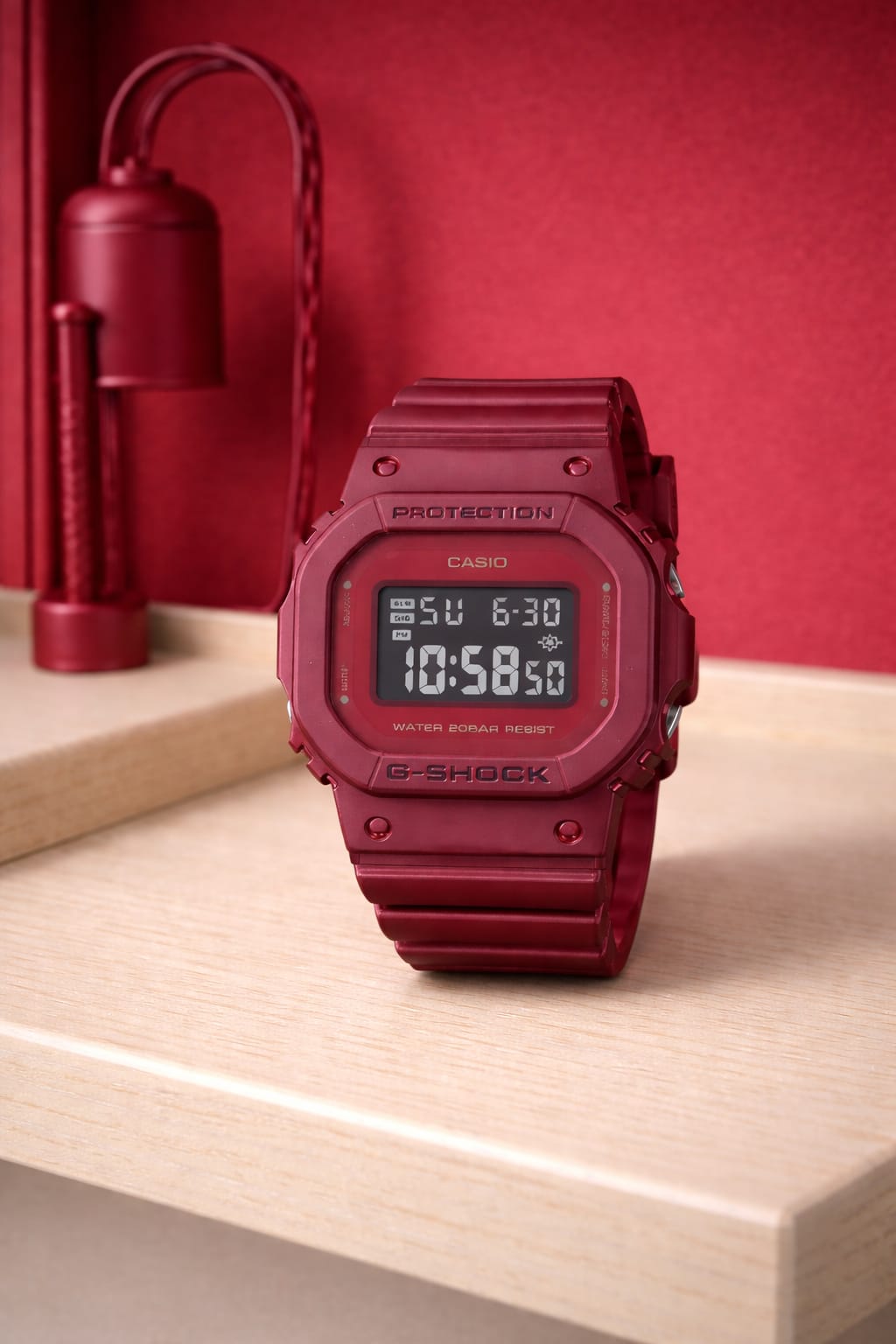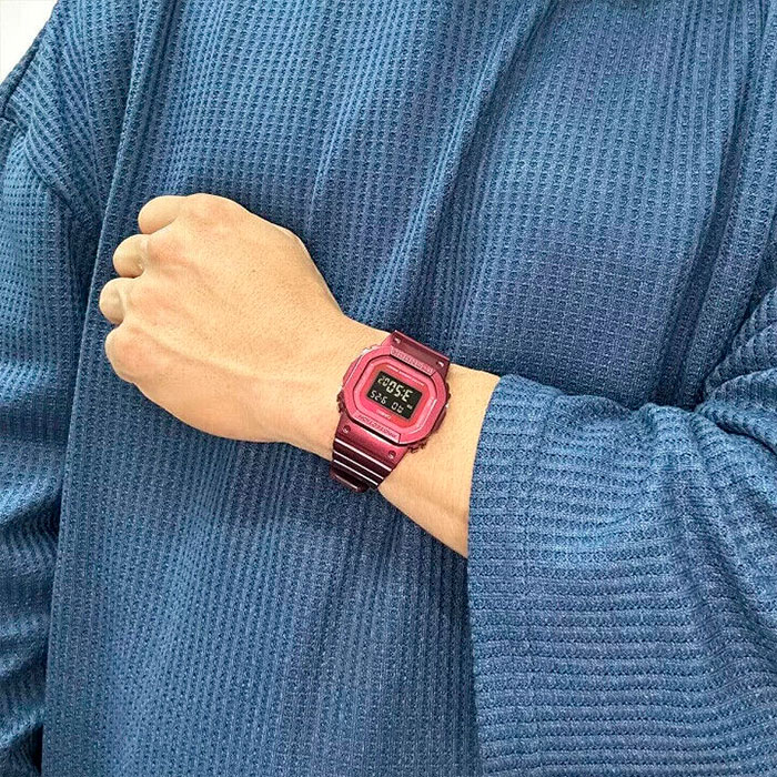 A compact and stylish G-SHOCK featuring a glossy maroon/red resin case and strap with a metallic finish. The GMD-S5600RB-4D combines iconic square design with rugged durability and everyday functionality—perfect for sporty and casual wear.