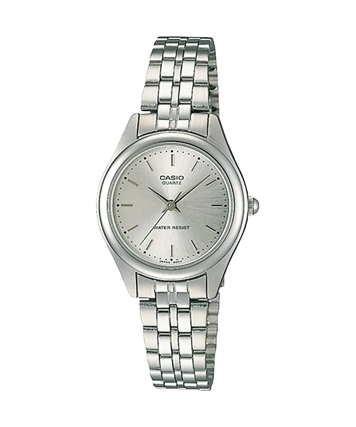The Casio LTP-1129A-7A is a classic and elegant ladies watch designed with a silver dial and stainless-steel bracelet, offering a timeless style suitable for everyday wear and formal occasions. Its minimalist analog design with three hands ensures easy readability while maintaining a sophisticated look.