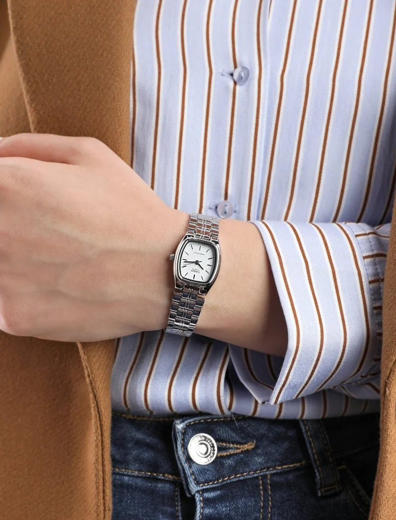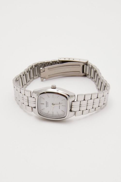 The Casio LTP-1169D-7A is an elegant ladies analog watch designed with a slim rectangular case and a classic stainless-steel bracelet. Its clean white dial with simple hour markers gives it a timeless look that matches both casual and formal outfits. Powered by reliable quartz movement, the watch delivers accurate timekeeping with minimal maintenance. The durable mineral glass protects the dial from scratches, while the lightweight stainless-steel band ensures comfortable everyday wear.