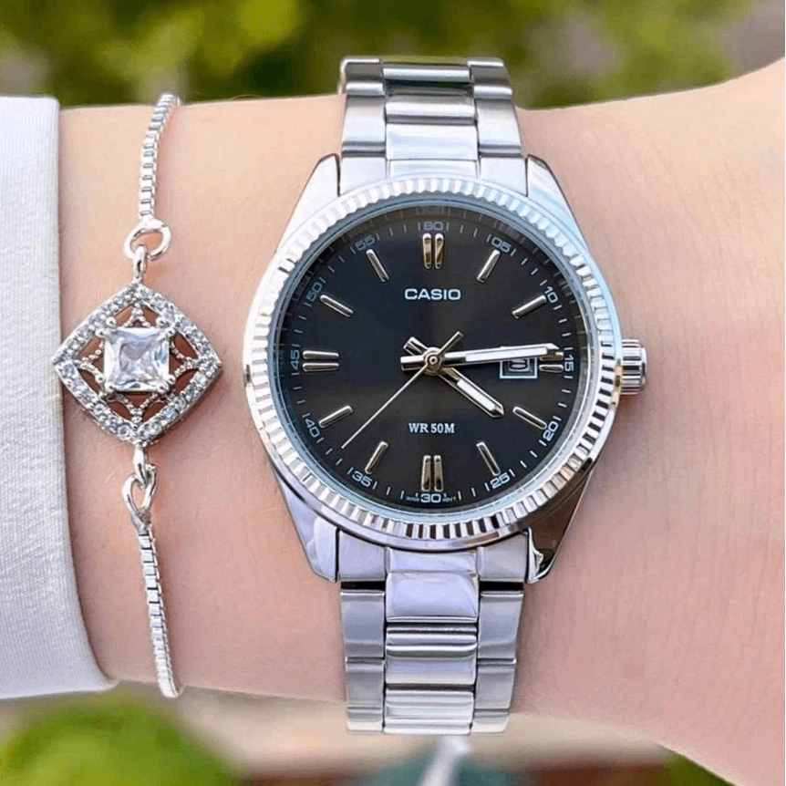 Timeless and versatile, the Casio LTP-1302D-1A1 features a sleek black dial with a polished stainless steel finish. Designed for everyday elegance, this watch offers durability, water resistance, and a classic look suitable for both work and casual wear.