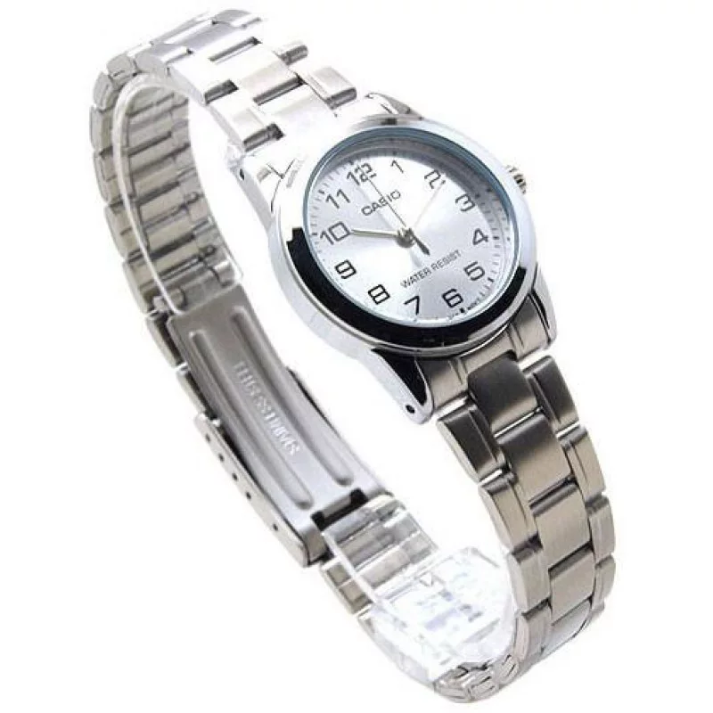 The Casio LTP-V001D-7B is a classic and elegant women’s watch featuring a clean white dial paired with a polished stainless steel bracelet. Its minimalist design makes it perfect for both everyday wear and formal occasions, offering timeless style with reliable quartz precision.