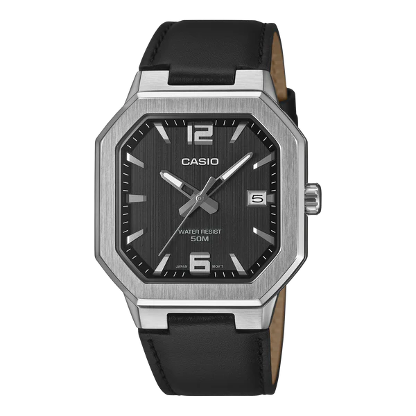 Elegant and lightweight, the CASIO MTP-B195L-1A features a genuine leather strap, sleek black dial, and accurate quartz movement—perfect for everyday sophistication.
