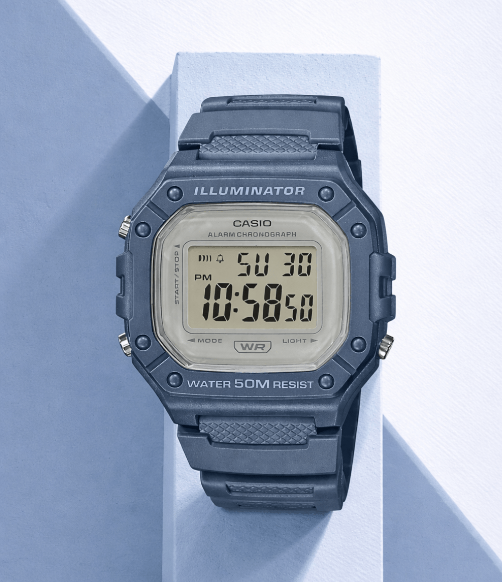 The Casio W218HC-2AV Digital Watch features a stylish blue resin strap with a sporty square design, perfect for everyday wear. Built for durability and comfort, it includes essential digital functions such as a stopwatch, daily alarm, LED backlight, and 50-meter water resistance—making it ideal for casual and active lifestyles.
