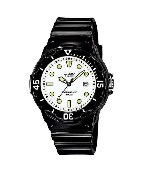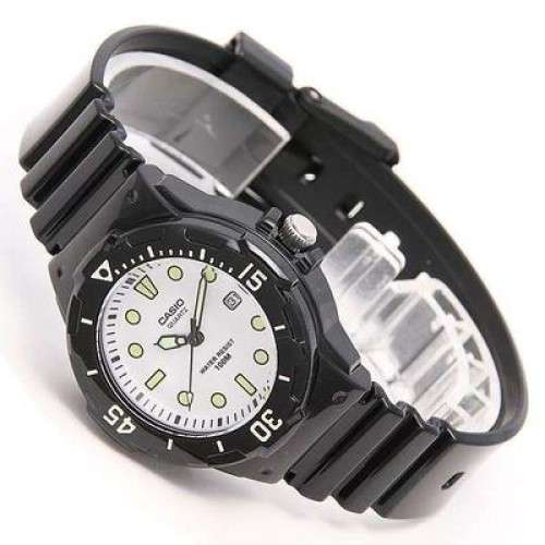 The Casio Youth LRW200H-7E1 is a sporty and reliable ladies watch designed for everyday wear. It features a clean white dial with a black resin strap, giving it a bold contrast and modern look suitable for casual outfits, outdoor activities, and daily use.