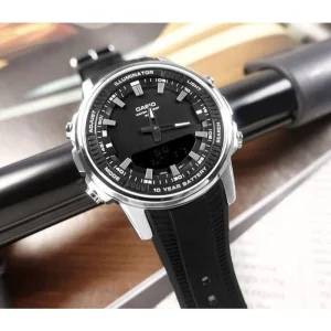 The Casio AMW‑880D‑1A is a sleek and reliable analog‑digital men’s watch that blends classic design with modern functionality. Featuring a durable stainless steel case and bracelet, this timepiece offers world time, telememo memory, stopwatch, countdown timer, and multiple alarms — all visible on both analog hands and a digital display. With 50 m water resistance, an LED light for easy reading, and a long‑lasting battery life of up to 10 years, it’s the perfect blend of style and everyday practicality for work, travel, or casual wear.