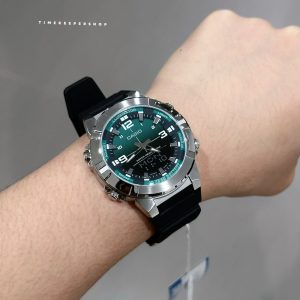 The Casio AMW-870A-3A is a stylish analog-digital men’s watch that blends classic design with powerful functionality. Featuring a striking gradient green dial, this timepiece offers essential features like world time, stopwatch, countdown timer, and multiple alarms, all powered by a long-lasting 10-year battery. With a durable stainless steel case, comfortable resin band, and 50 m water resistance, it’s perfect for everyday wear with dependable performance and timeless appeal.