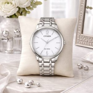 tep into timeless elegance with the Citizen EM0411-71A — designed for women who value both style and smart technology. Powered by Eco-Drive, it runs on any light source, so you’ll never need a battery replacement.