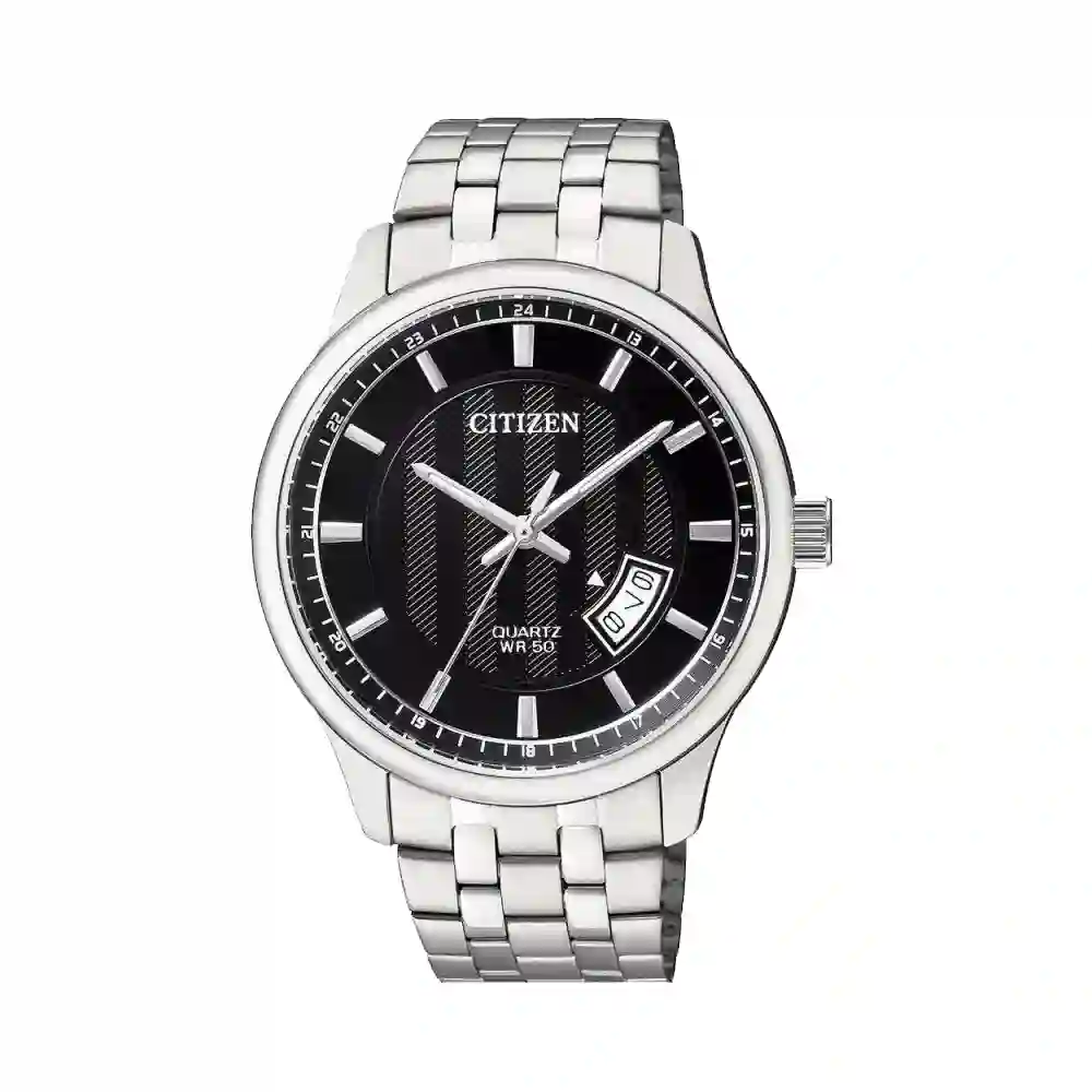 The CITIZEN BI1050-56L offers a striking look with its blue dial and 41mm stainless steel case. Featuring a stainless steel bracelet, date display, and 50-meter water resistance, this watch is perfect for men seeking both style and performance.