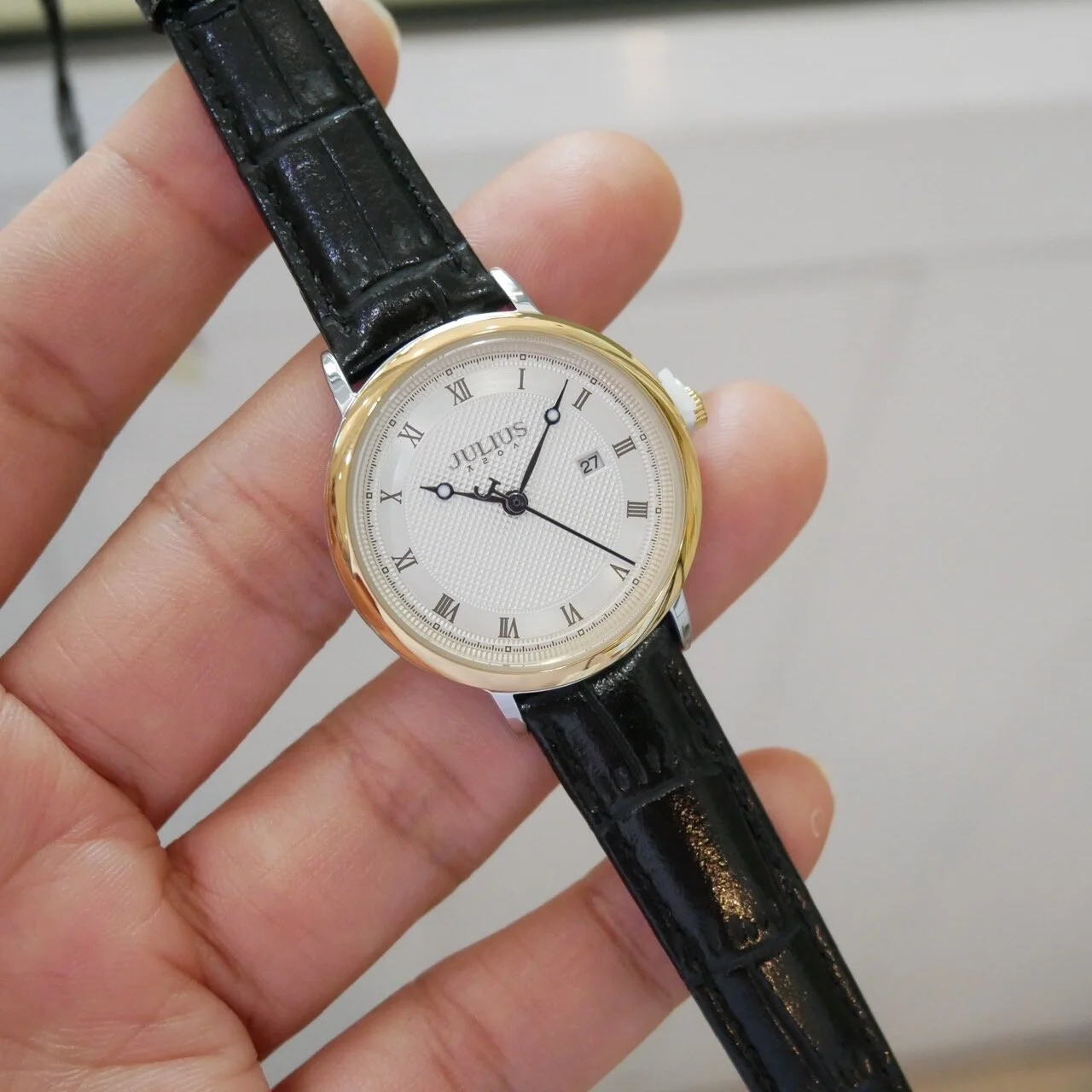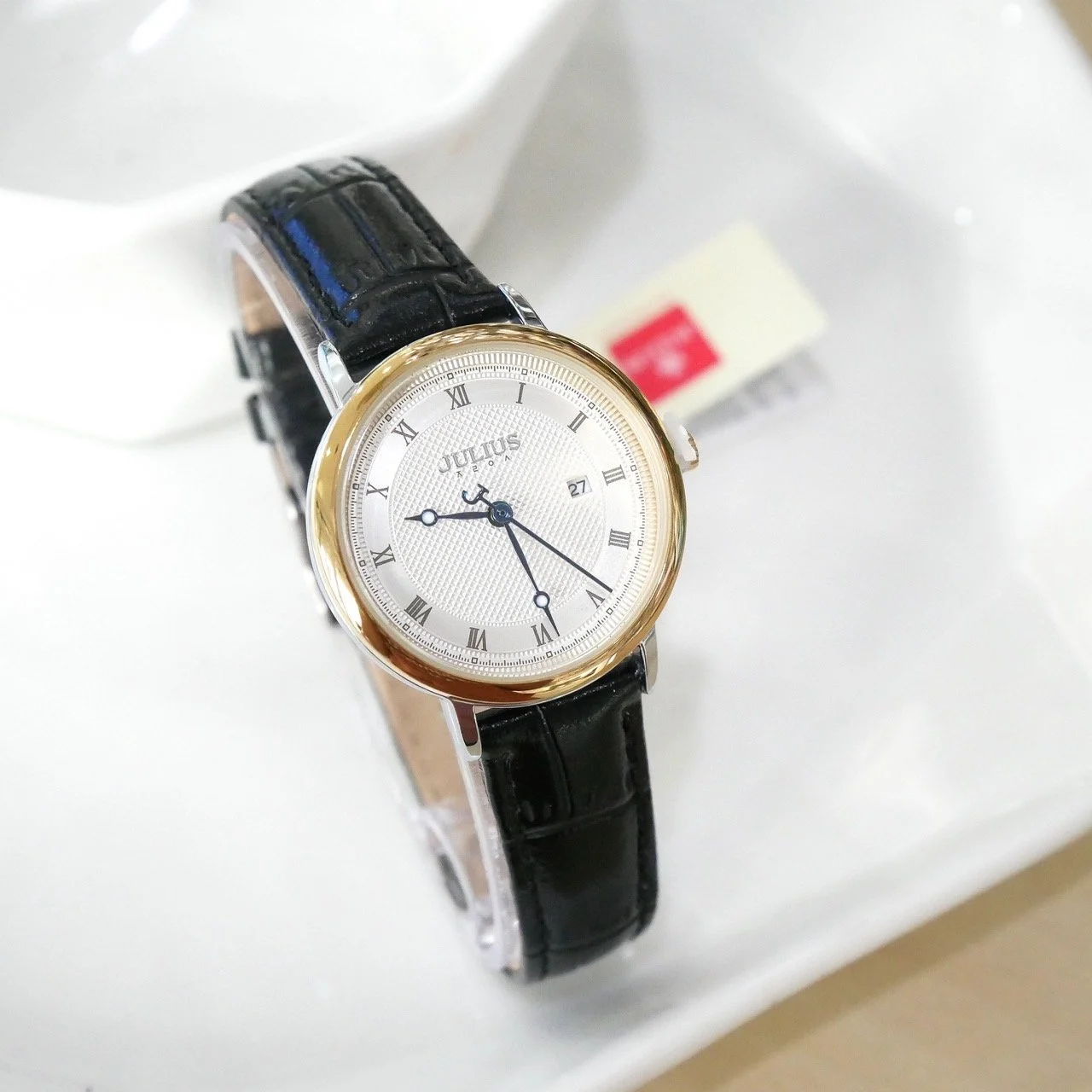 The JULIUS JA1450LB Black Ladies Watch is a stylish and elegant timepiece designed for modern women who appreciate Korean fashion and minimalist beauty. Featuring a sleek black dial paired with a premium black leather strap, this watch delivers a sophisticated and versatile look suitable for both daily wear and special occasions.