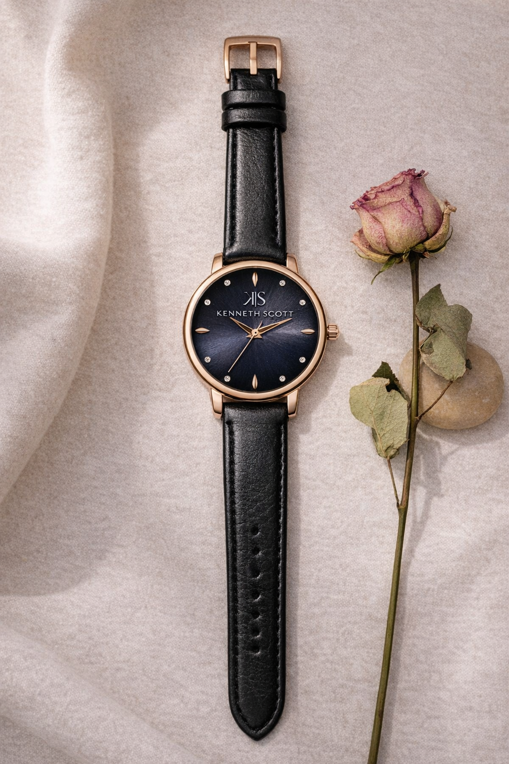 The KENNETH SCOTT 22524KLBMB is a stylish women’s analog watch combining modern design with everyday wear comfort. It features a round rose-gold-tone case, paired with a sleek black dial for a timeless look. Powered by reliable quartz movement, this timepiece ensures accurate timekeeping. The black polyurethane strap adds lightweight comfort and durability, making it ideal for daily use or casual occasions. With basic water resistance, it’s a practical choice for everyday life while maintaining an elegant aesthetic.