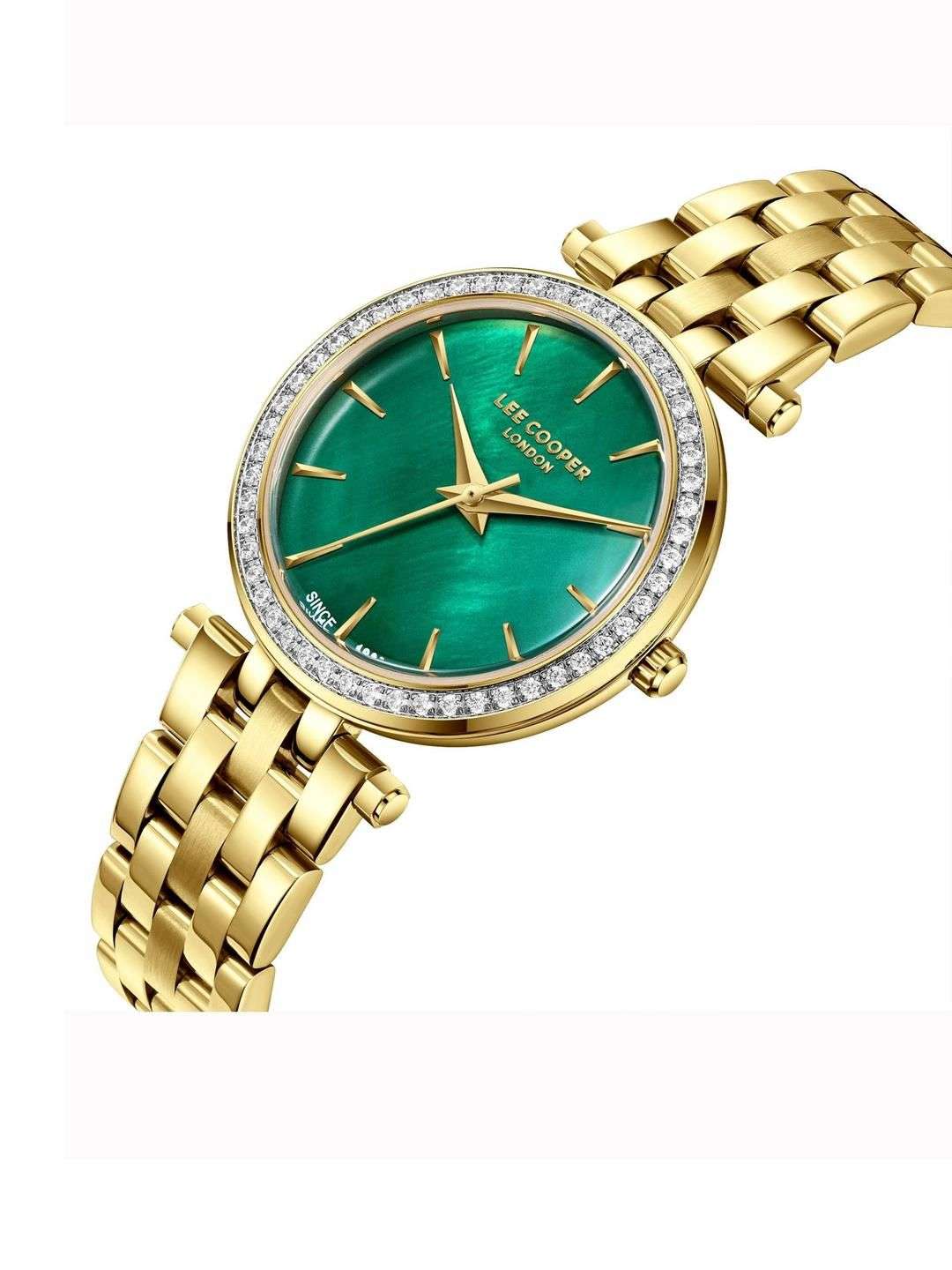 The Lee Cooper LC08158.170 features a stylish green dial paired with a matching stainless steel bracelet, giving it a bold and fashionable look. Its clean analog design and compact size make it perfect for everyday wear while adding a trendy touch to any outfit. Designed for modern women, this watch combines elegance with durability, making it suitable for both casual and semi-formal occasions.