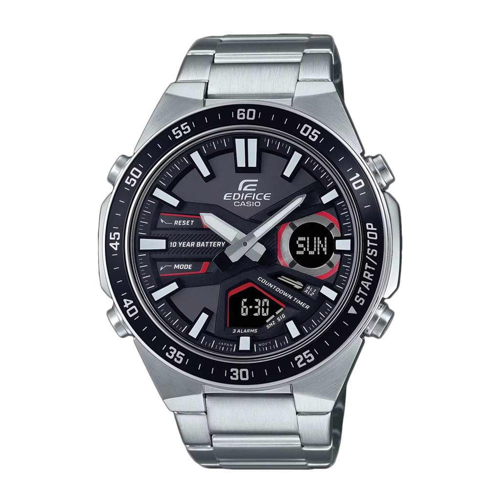 Regular timekeeping: Analog: 2 hands (hour, minute; hands move every 20 seconds) Digital: Hour, minute, second, am/pm, month, date, day