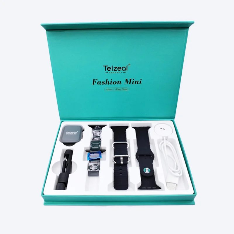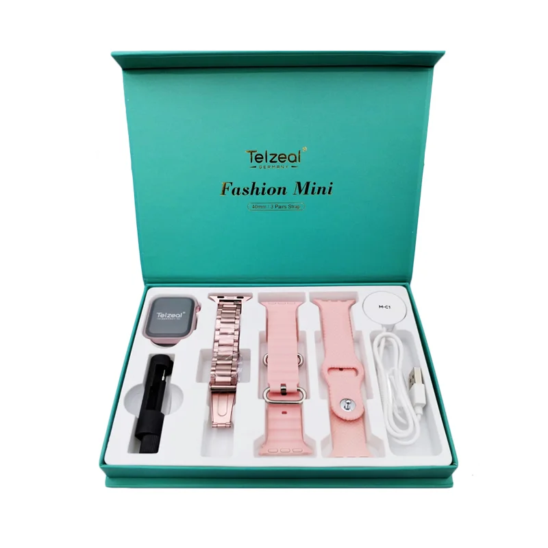The Telzeal Fashion Mini Smartwatch is a compact and stylish wearable designed for versatility and convenience. With its sleek 40mm face, this smartwatch fits comfortably and pairs effortlessly with any outfit. It comes with three interchangeable straps, allowing you to customize your look for different occasions.