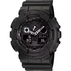 The Casio G‑Shock GA100‑1A1 is a bold and durable analog‑digital timepiece engineered for everyday wear and extreme conditions. Known for its oversized design and high performance, this watch combines G‑Shock’s legendary shock resistance with practical features like world time, stopwatch, countdown timer, and LED illumination. Its all‑black stealth style makes it a versatile choice for work, weekends, sports, and outdoor adventures.