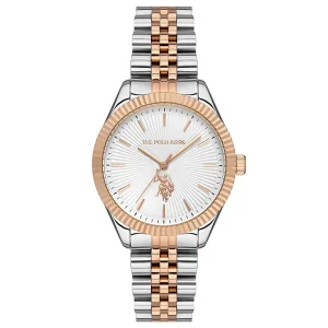 A refined and elegant ladies watch from U.S. Polo Assn. featuring a two-tone gold and silver stainless steel bracelet. Designed with a classic dial and slim profile, it is ideal for both everyday wear and formal occasions.