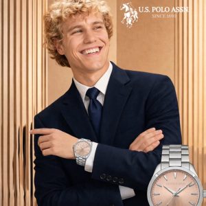A stylish and elegant men’s watch from U.S. Polo Assn. featuring a unique peach-tone dial paired with a stainless steel bracelet. Designed for modern formal wear, it offers a fresh premium look that stands out from regular silver or black dial watches.