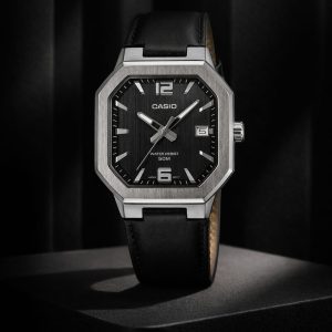 Elegant and lightweight, the CASIO MTP-B195L-1A features a genuine leather strap, sleek black dial, and accurate quartz movement—perfect for everyday sophistication.