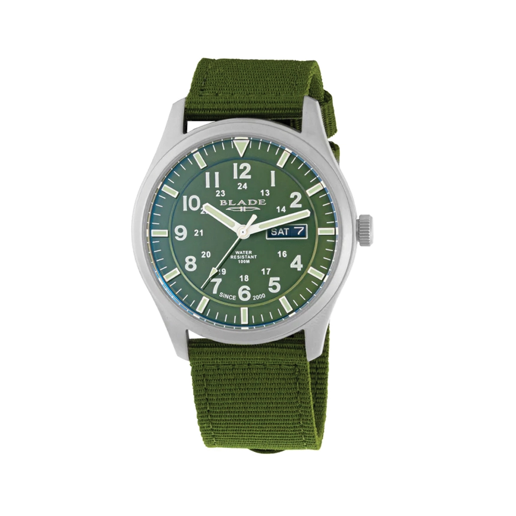 BLADE Runner Khaki 3603G6SEE – Intrepid Collection – Round – 42mm Stainless Steel Case – Anti-Reflective Mineral Glass – Green Dial – Japan Day-Date Quartz Movement – 22mm Green Nylon Strap – Tang Buckle – 10ATM Water Resistant – Strong Luminous – Matte finish – Men’s Watch – 2 Years Warranty