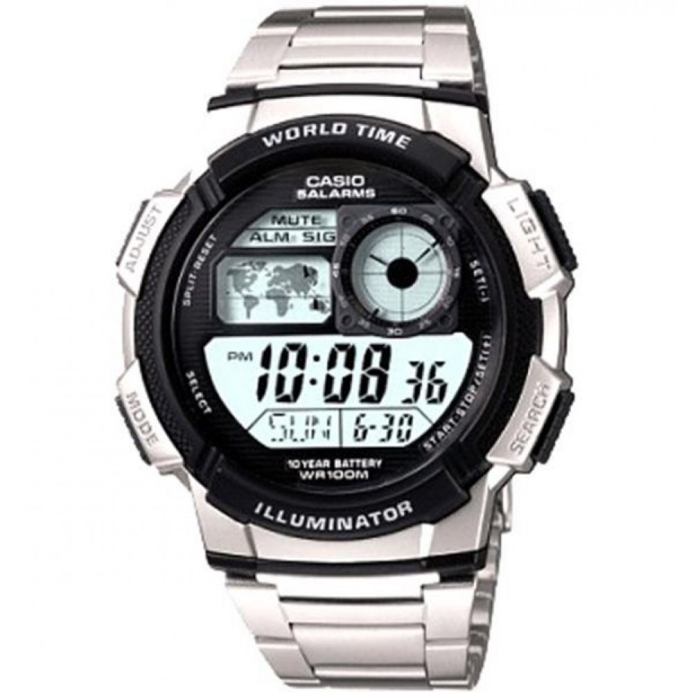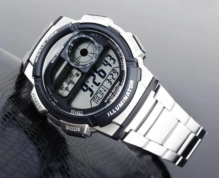 A rugged, reliable digital watch featuring world time, 10-year battery life, LED illumination, and water resistance — perfect for everyday wear with sporty functionality.