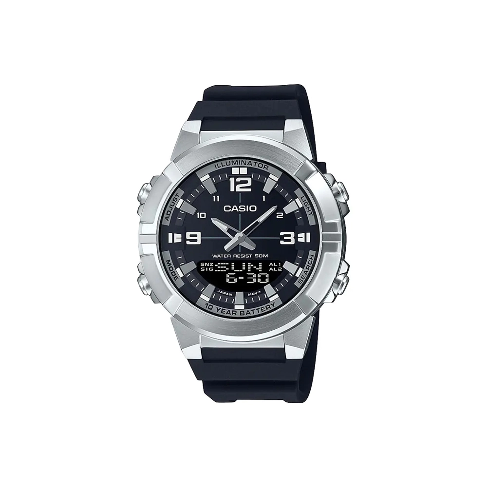 The Casio AMW-870-1A is a stylish and highly functional analog-digital men’s watch that combines classic design with modern features. Housed in a robust stainless steel case with a comfortable resin strap, this timepiece offers world time, telememo memory, stopwatch, countdown timer, and multiple alarms — making it perfect for everyday wear and travel. With 50 m water resistance and a long battery life of approximately 10 years, the AMW-870-1A delivers dependable performance and versatile utility for the active lifestyle.