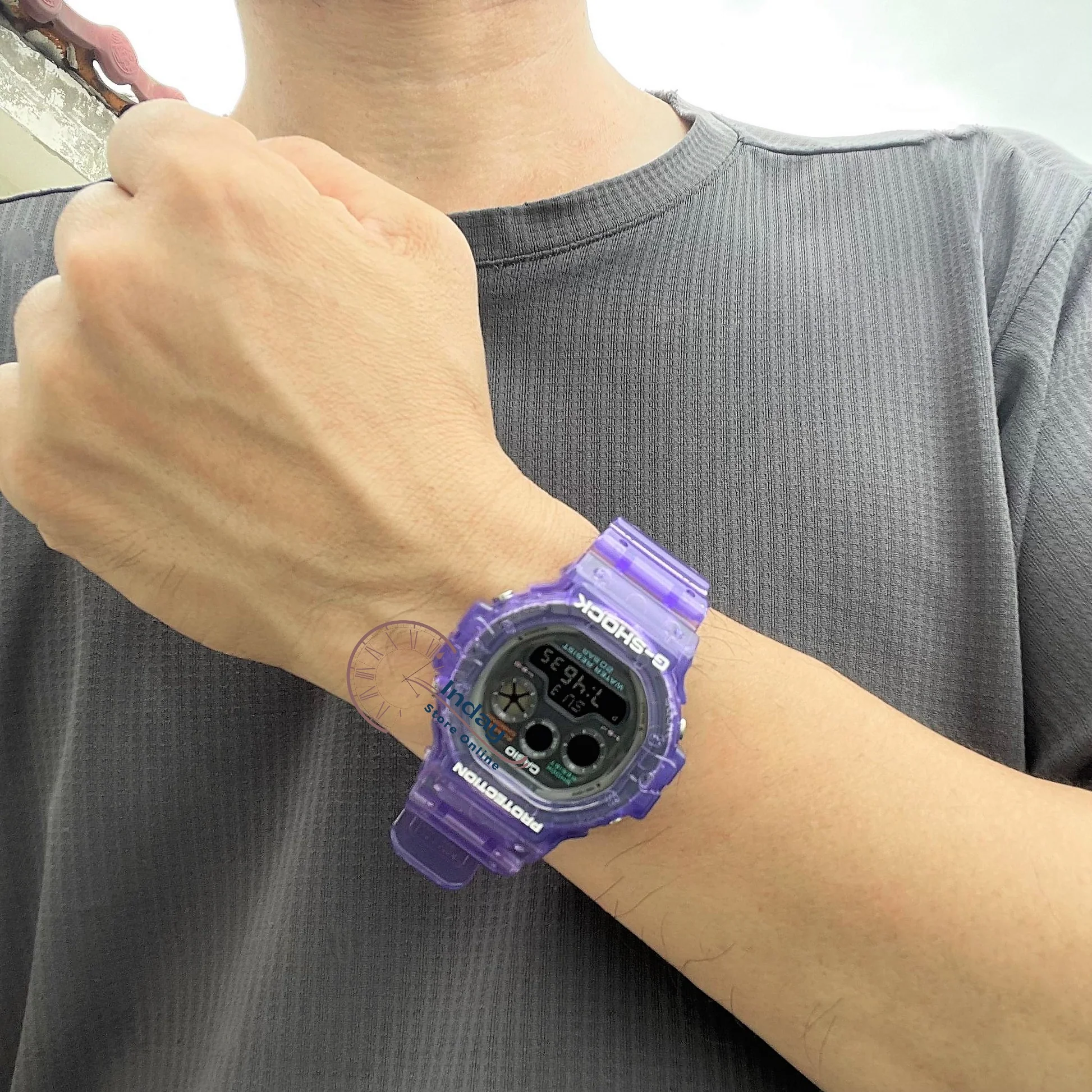The CASIO G‑SHOCK DW5900JT‑6D is a standout digital watch from Casio’s legendary 5900 Series, brought to life with a retro‑future look and vibrant translucent purple design that gives it a bold visual identity while staying true to G‑SHOCK toughness. Built to endure everyday wear and active lifestyles, it features iconic shock resistance, 200 m water resistance, and a reliable digital module that combines essential functions like world time, stopwatch, countdown timer, multiple daily alarms, and a full auto‑calendar. The easy‑to‑read triple‑graph display and bright electro‑luminescent backlight make it both functional and stylish — ideal for sports, casual wear, and outdoor adventures.