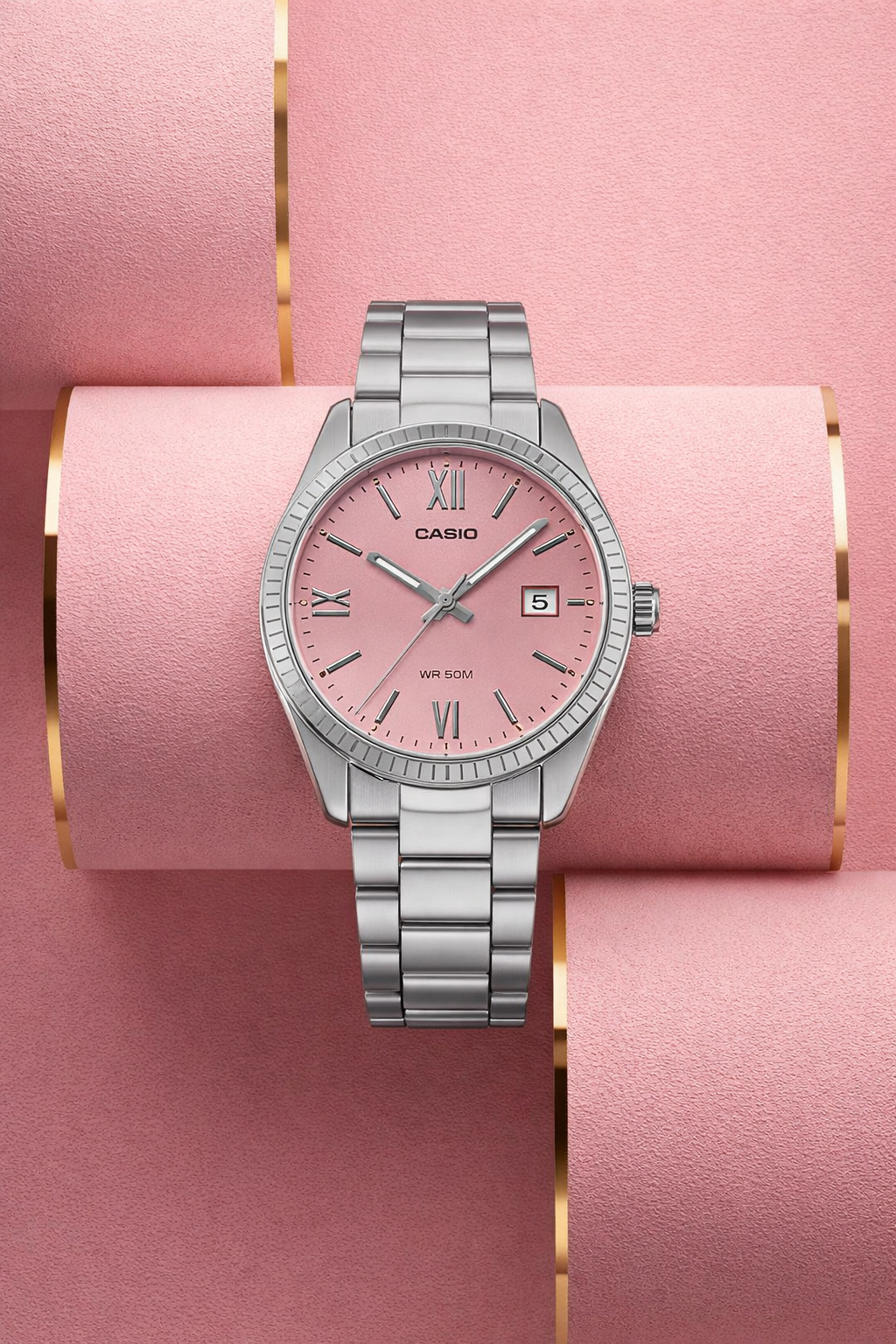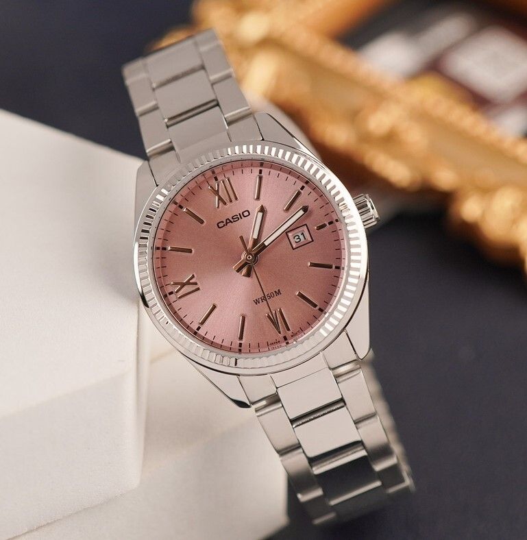 The CASIO LTP1302DD-4A1 combines timeless elegance with reliable performance — perfect for everyday wear or special occasions. Featuring a classic analog design with a stylish sunray pink dial, this women’s watch pairs beautifully with both casual and formal outfits. The easy-to-read date display at the 3 o’clock position adds practicality, while the stainless steel case and bracelet deliver lasting durability. With water resistance up to 50 meters and a precise quartz movement, this timepiece offers dependable performance you can rely on every day.