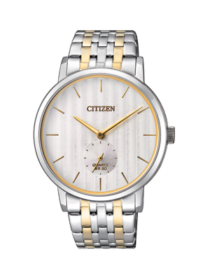 The CITIZEN BE9174-55A showcases refined elegance with its 40mm stainless steel case, silver-tone dial, and matching stainless steel bracelet. Its clean, minimalist design is complemented by a date display and 50-meter water resistance, making it a versatile timepiece for both casual and formal occasions.