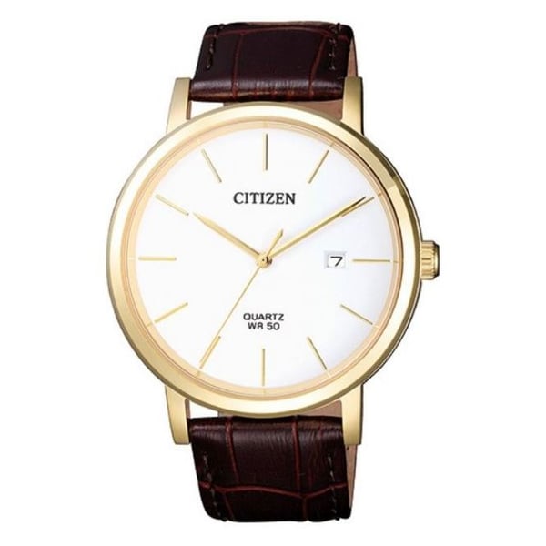 The CITIZEN BI5072-01A offers a sophisticated look with a clean white dial, 40mm stainless steel case, and a comfortable leather strap. This classic watch features a date display and is water-resistant up to 50 meters, making it perfect for everyday use.