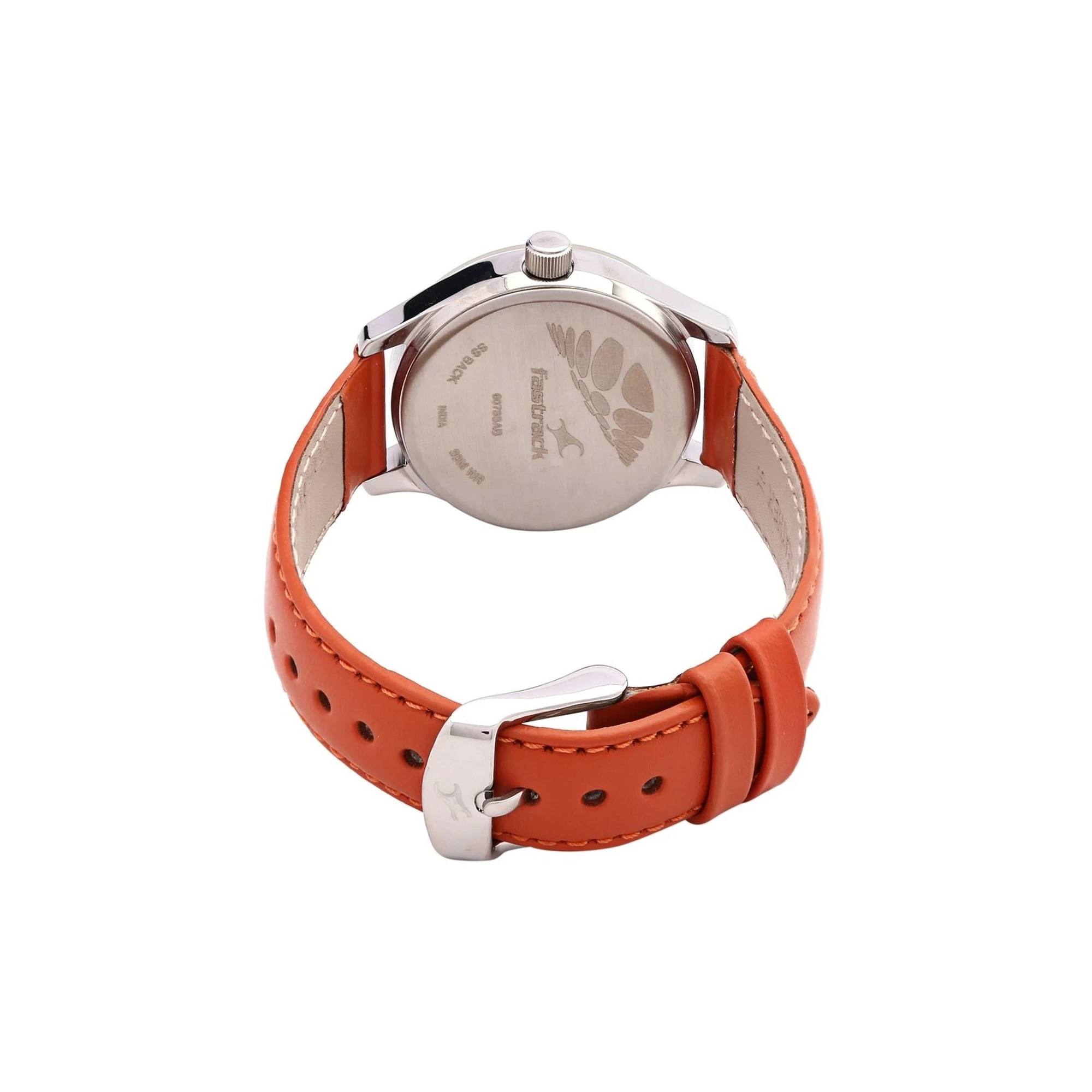 Dial Color: Orange & White, Case Shape: Round, Dial Glass Material: Mineral