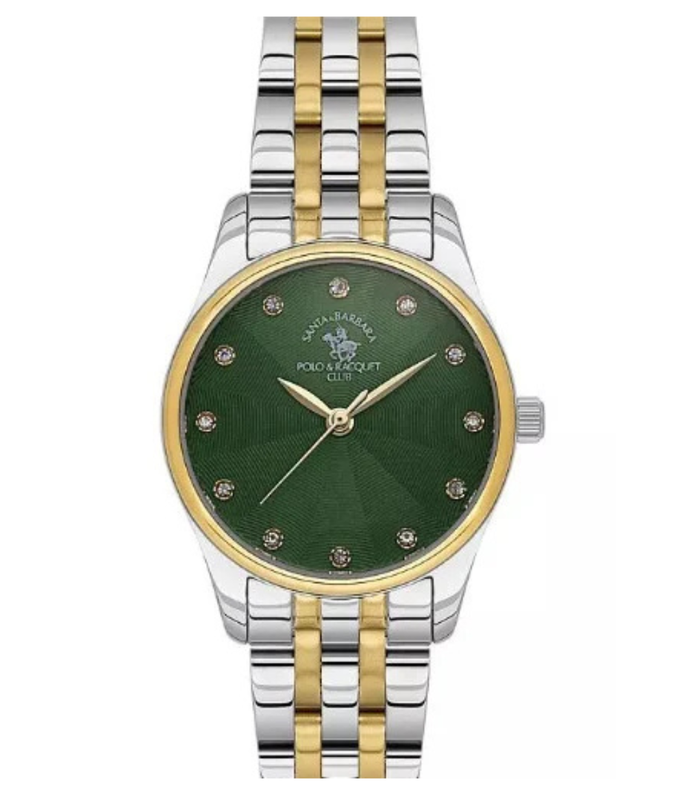 A graceful and trendy ladies’ watch from Santa Barbara Polo & Racquet Club, the SB 1106495 features a rich green dial with a refined finish, perfect for adding a touch of elegance to both everyday and occasion wear.
