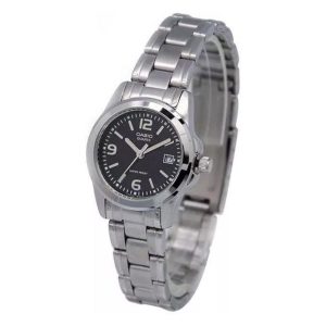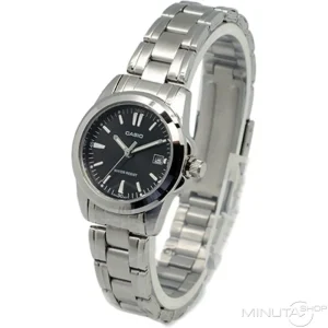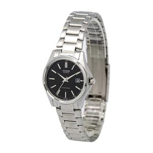 The Casio LTP-1183A-1A is a classic ladies’ analog watch featuring a sleek stainless-steel case and bracelet with an elegant black dial. Powered by precise quartz movement, it offers reliable timekeeping, a convenient date display, and durable mineral glass. Its slim and timeless design makes it perfect for everyday wear as well as formal occasions.