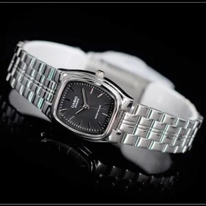 The Casio LTP-1169D-1A is a classic ladies analog watch designed with a slim rectangular case and elegant stainless-steel bracelet. Its minimalist black dial and simple three-hand display give it a timeless look suitable for both casual and formal wear. Powered by reliable quartz movement, the watch ensures accurate timekeeping while maintaining a lightweight and comfortable design for everyday use. The durable mineral glass protects the dial from scratches, and the stainless-steel band adds a refined finish to the watch.