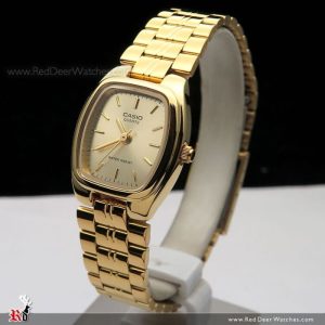 The Casio LTP-1169N-9A is a stylish ladies’ analog watch featuring a sleek gold-tone stainless steel case and bracelet. Designed with a slim and elegant profile, it offers reliable quartz movement, a clear analog display, and durable mineral glass. Its classic gold dial and minimalist design make it perfect for both everyday wear and formal occasions.