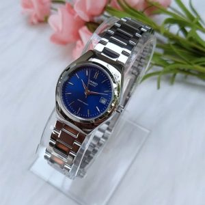 The Casio LTP-1170A-2A is an elegant ladies’ analog watch featuring a stainless-steel case and bracelet with a stylish blue dial. Powered by reliable quartz movement, it offers precise timekeeping, a date display, and durable mineral glass. Its classic design and slim profile make it suitable for both everyday wear and formal occasions.