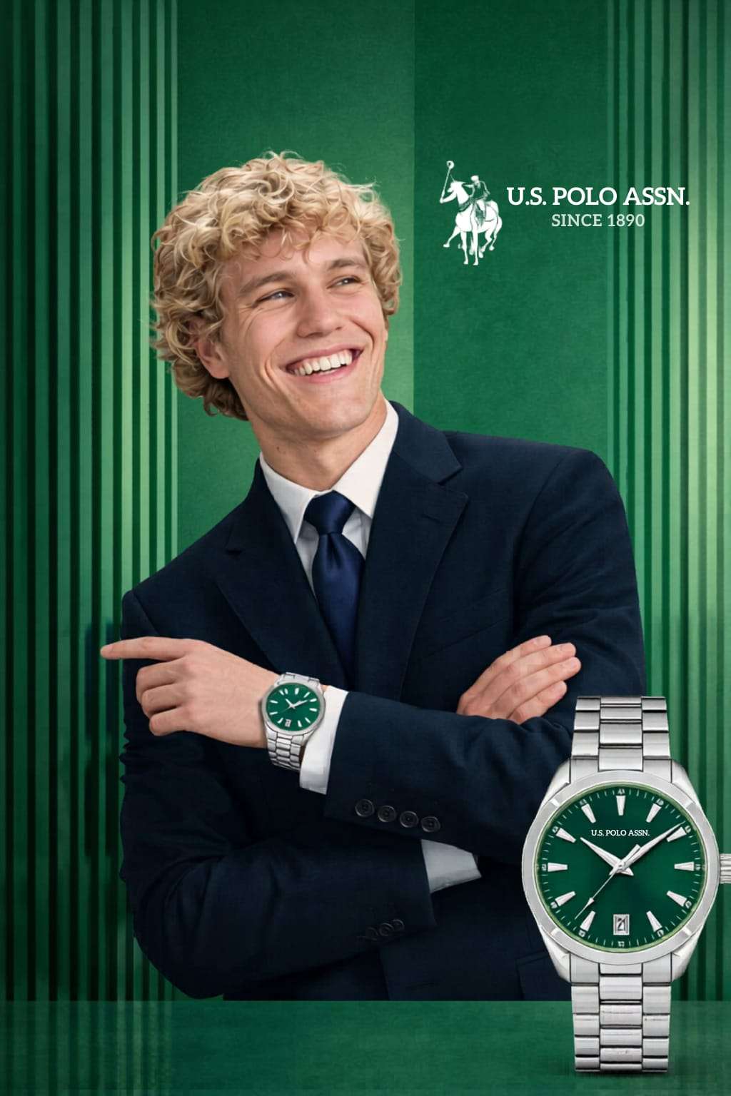 A modern and stylish men’s watch from U.S. Polo Assn. featuring a rich green dial paired with a stainless steel bracelet. Designed for today’s trend, it offers a premium look that stands out while still being versatile for office and casual wear.
