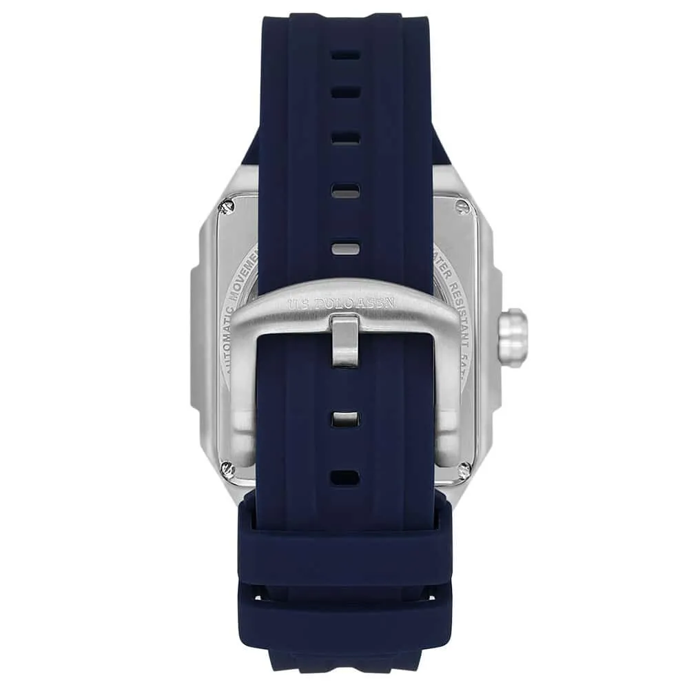 The U.S. Polo Assn. A1122-02 features a bold navy blue dial paired with a sporty and modern design. Its unique case shape and strong metallic finish give it a standout look, making it perfect for men who prefer a stylish and eye-catching timepiece. Designed with durable materials and reliable movement, this watch is suitable for both everyday wear and casual occasions. The deep blue dial adds a premium and confident touch to the overall design.