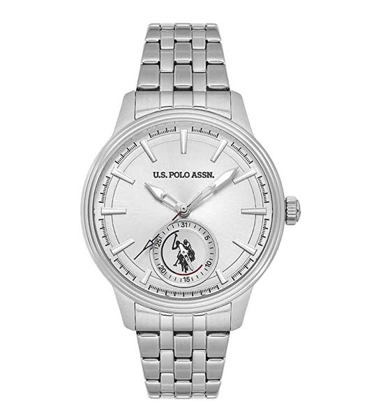 The U.S. Polo Assn. A1131-03 in silver features a sleek metallic finish with a modern, minimal dial design. Built with a durable stainless steel bracelet, this watch offers a refined and versatile look suitable for both everyday wear and formal occasions. Its clean silver-tone styling adds a premium touch to any outfit.