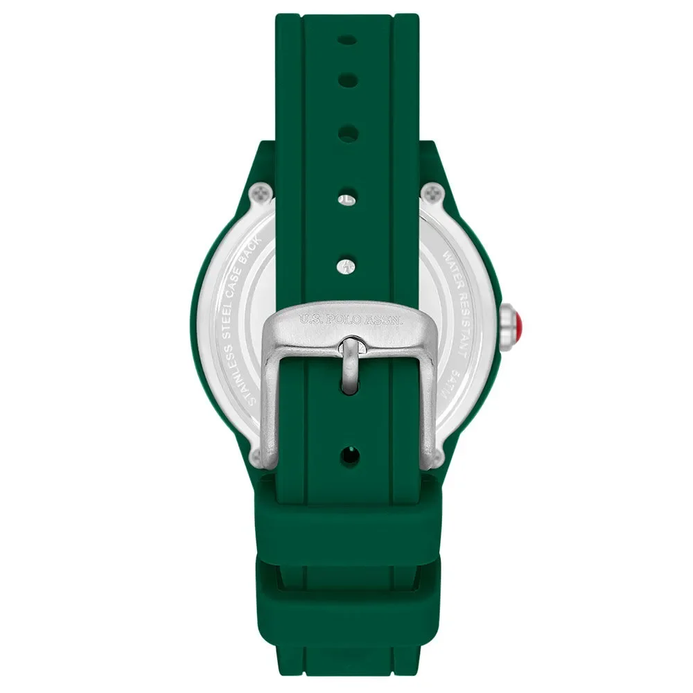 The U.S. Polo Assn. A2007-08 is an elegant ladies’ watch featuring a rich green dial paired with a gold-tone stainless steel bracelet. Designed with a classic and refined look, it is perfect for everyday wear as well as special occasions.