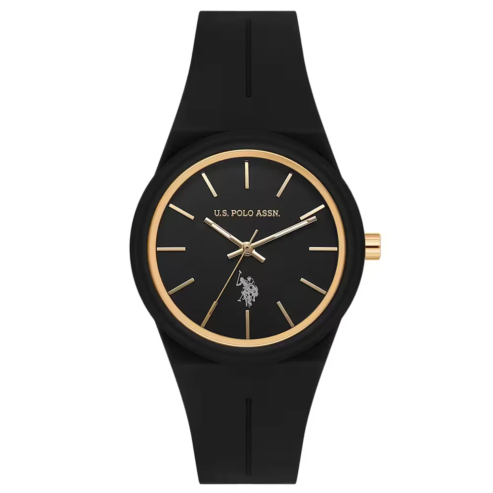 The U.S. Polo Assn. A2101-05 features a bold all-black design with a sleek dial and matching strap, giving it a strong and sporty appearance. Built for everyday wear, this watch combines a modern minimal look with durable construction, making it perfect for casual and active lifestyles. The full black finish adds a sharp and versatile edge to any outfit.