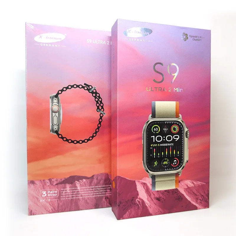 Introducing the X-INOVA S9 Ultra 2 Mini Smartwatch, a stylish and versatile companion for your active lifestyle. This smartwatch features a sleek design and comes with three interchangeable straps, allowing you to customize your look for any occasion. Equipped with a vibrant display, the X-INOVA S9 Ultra 2 delivers clear notifications, fitness tracking, and health monitoring right on your wrist.